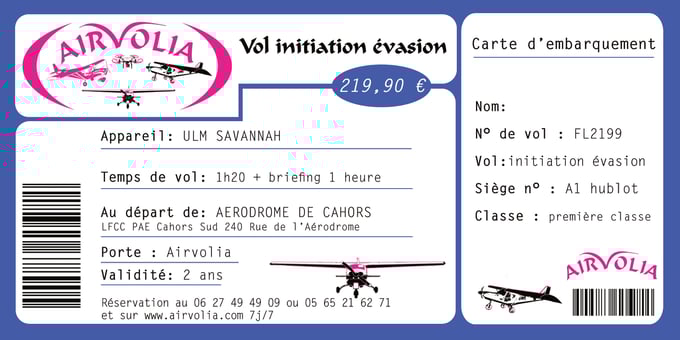 DEUX VOLS d’initiation de 40min en place élève pilote